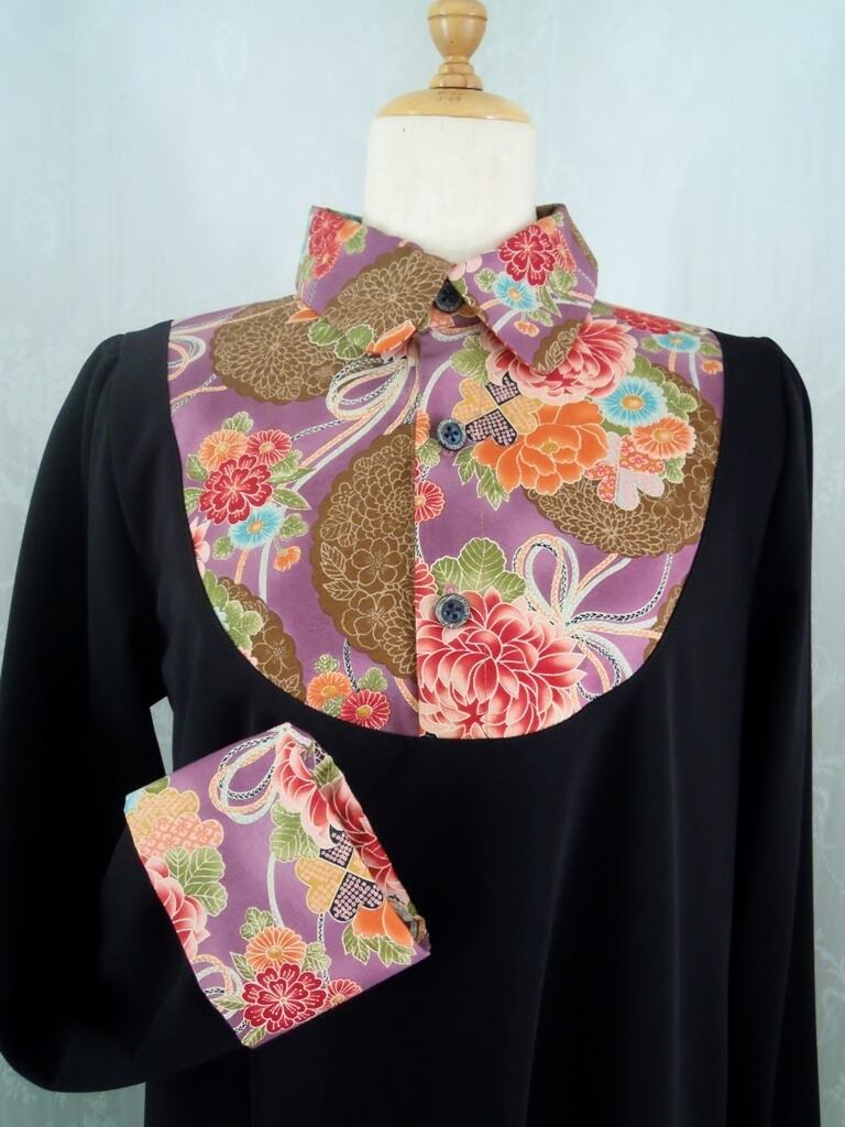 菊と組紐*和柄切り替えトラペーズワンピース(紫)