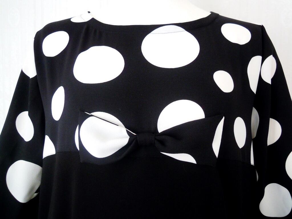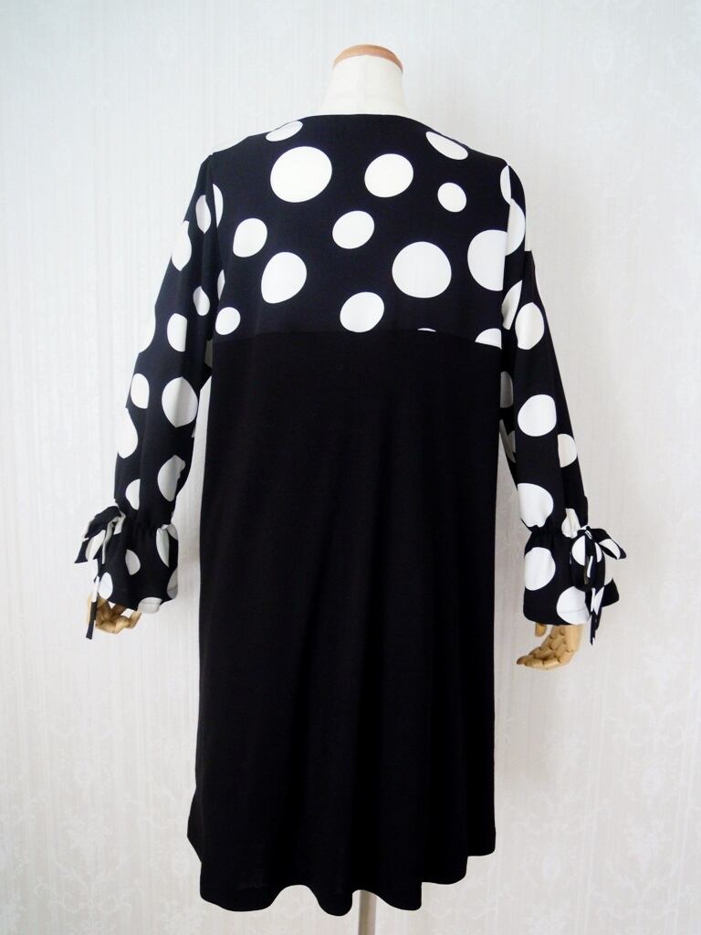 リボン付きギャザー袖ルーズ・フィットワンピース(ドット)