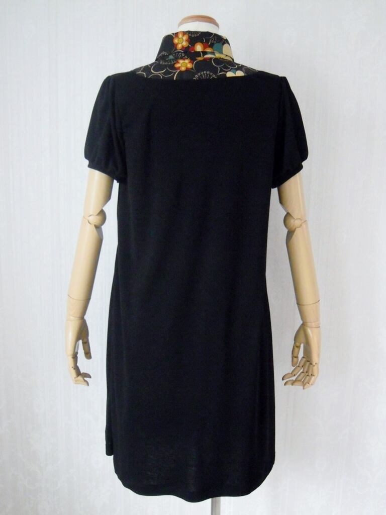 胸元切り替えルーズ・フィットワンピース(花モダン・黒)