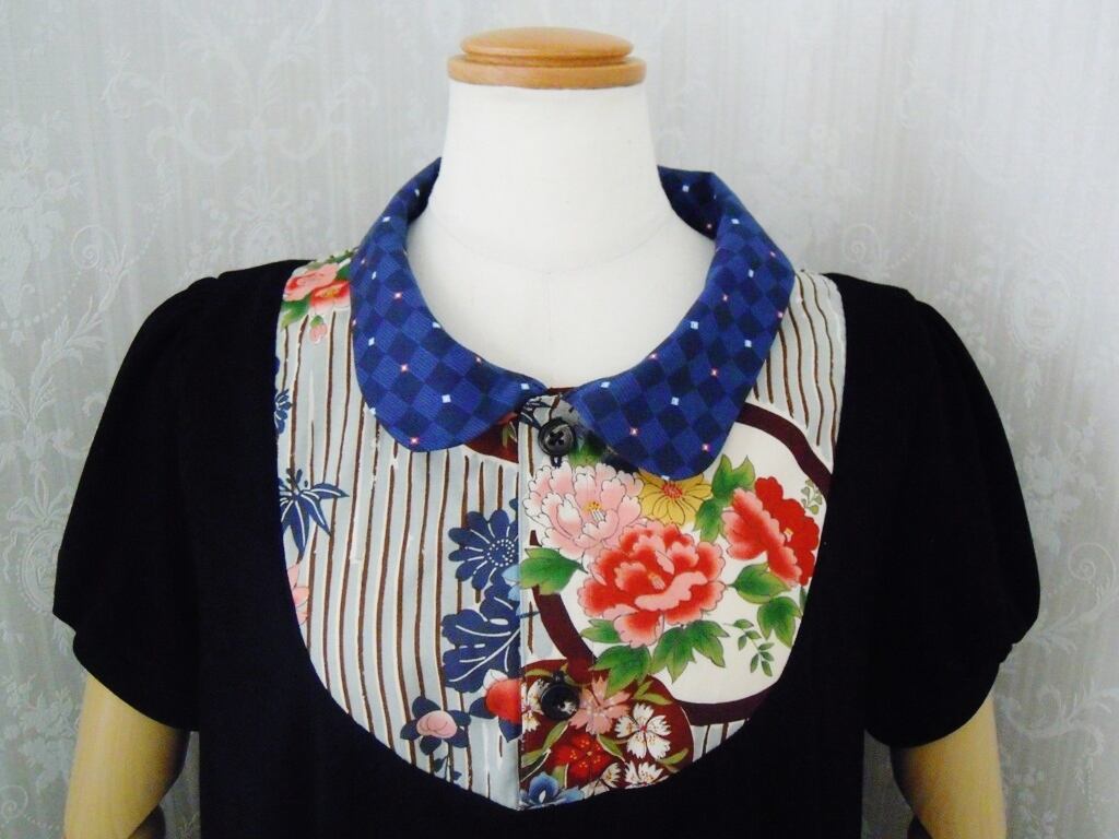 胸元切り替えルーズ・フィットワンピース(菊・牡丹と撫子)