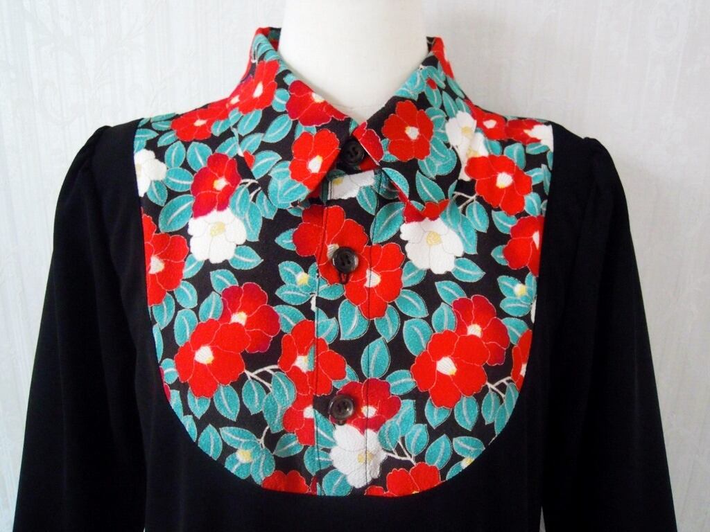 レトロで可愛い赤と白の椿柄はちりめん生地を使用。