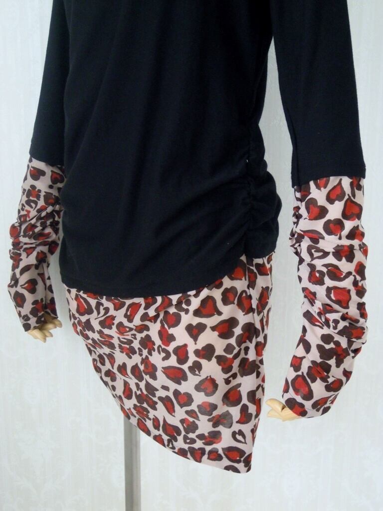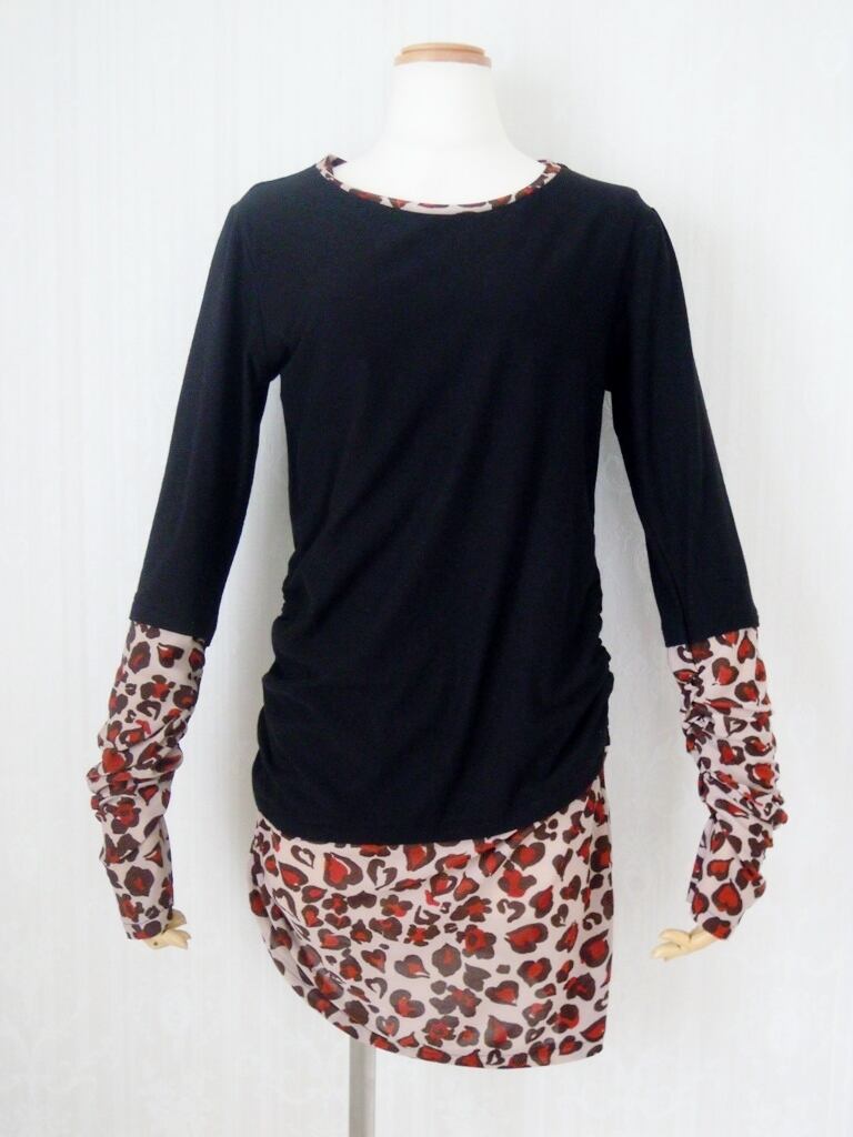 【1点物】ハート豹柄切り替えカットソー