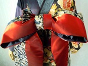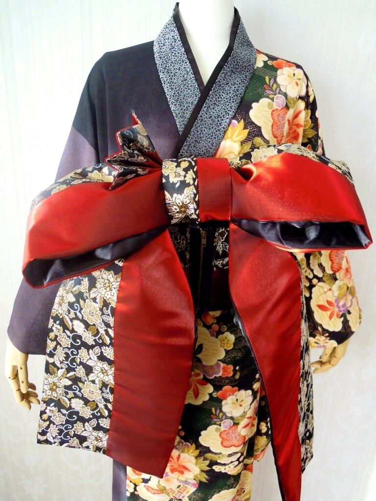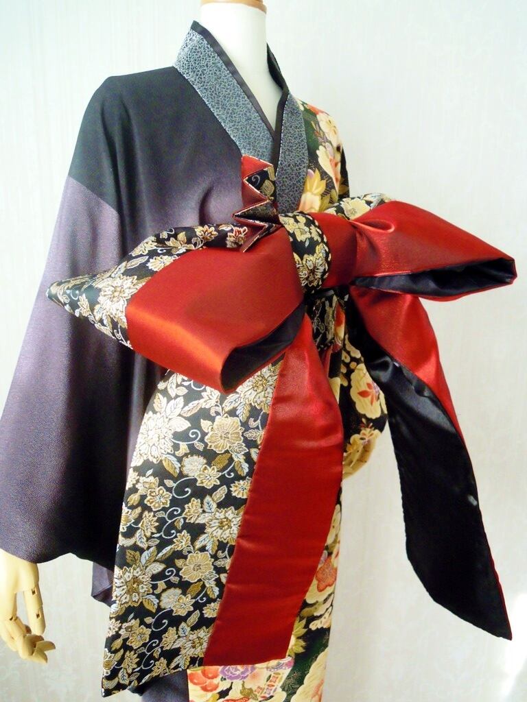 【1点物】扇・リボン作り帯(金襴と朱殷・其の弐)
