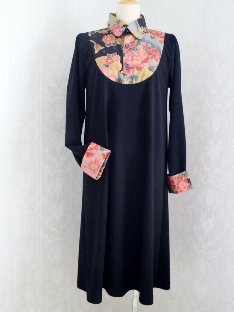 夜咲花*和柄切り替えトラペーズワンピース(ロング)