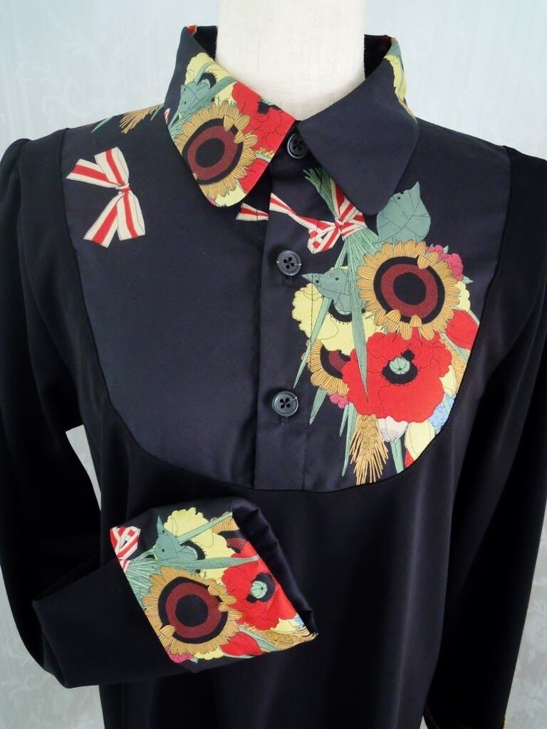 ひまわりブーケ*和柄切り替えトラペーズワンピース