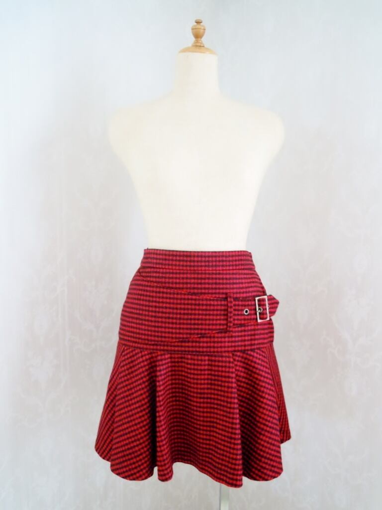 【1点物】ベルト付きタックスカート(赤×黒チェック)